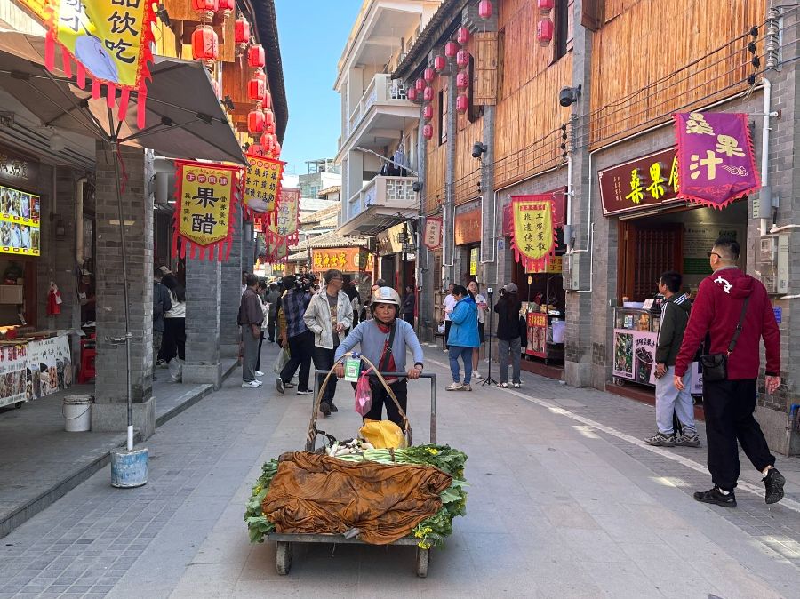 平日里的正果老街,本地村民上街叫卖,张梦琦摄