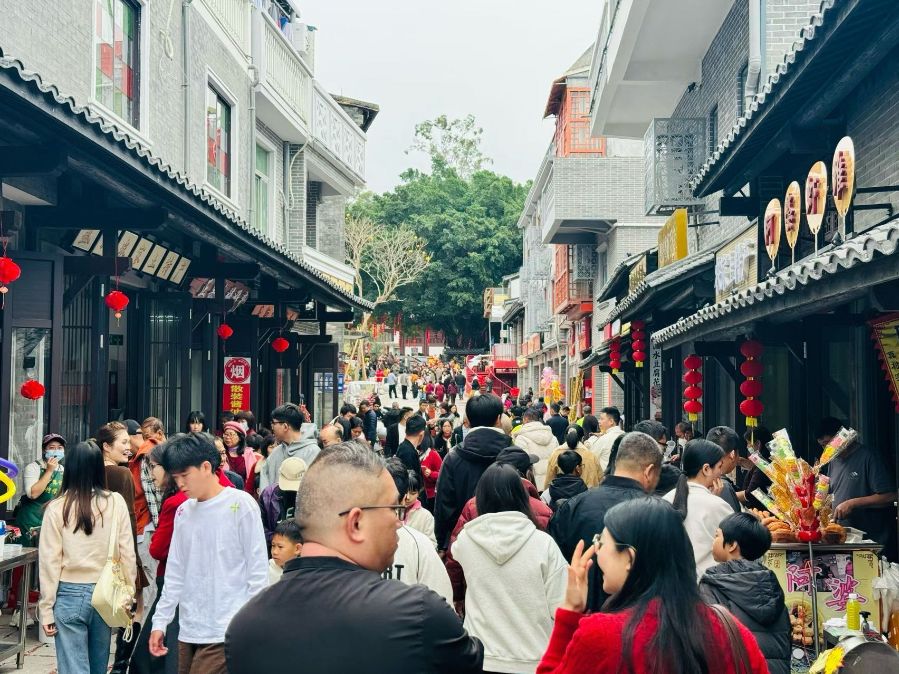 春节期间,广州市增城区正果镇正果老街人头攒动,受访者供图