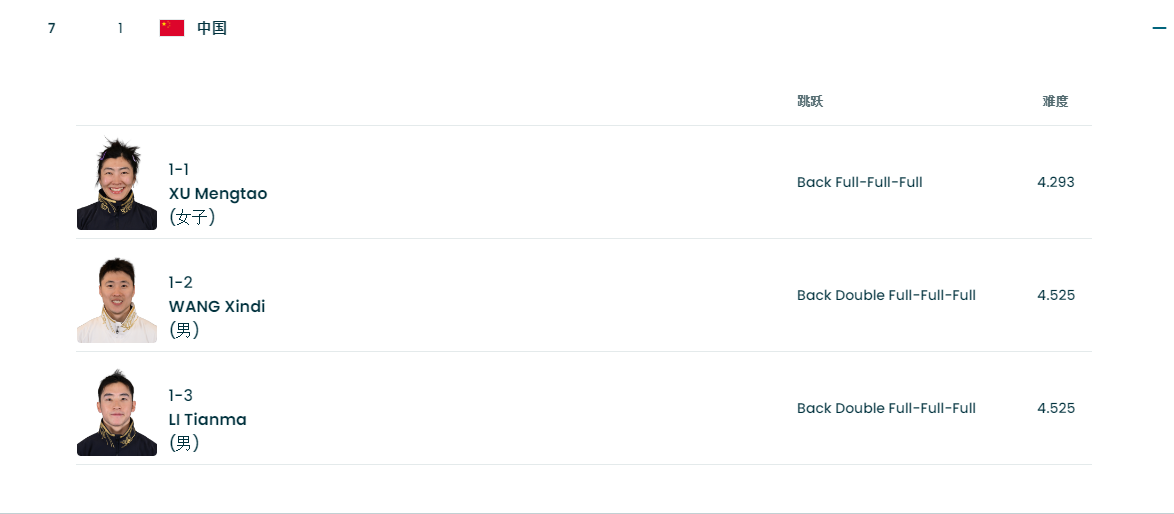 在男子个人项目中,已收获1金1铜。值得一提的是进入决赛最后一跳的6人中,有4名中国选手,展现出超强整体能力。