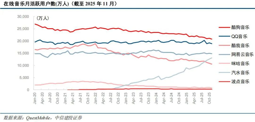 截至2025年11月底,汽水音乐日活(DAU)达4431万,仅次于酷狗音乐和QQ音乐,超越网易云音乐。
