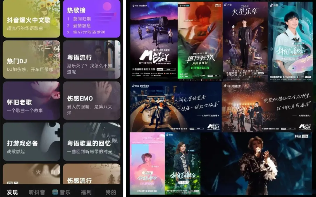 短视频平台,再造分发流程,抖音通过卡点、变装等方式,让歌曲绑定情绪与画面,推动音乐出圈。