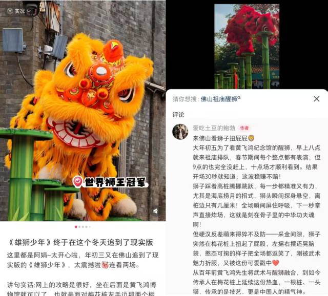 “我也看上佛山祖庙的舞狮啦!太精彩了!”“大年初五为了看黄飞鸿纪念馆的醒狮,早上八点就来祖庙排队。” 春节假期,佛山祖庙在各大社交平台强势“刷屏”,来自五湖四海的网友纷纷晒出打卡照。