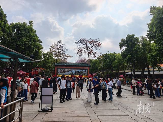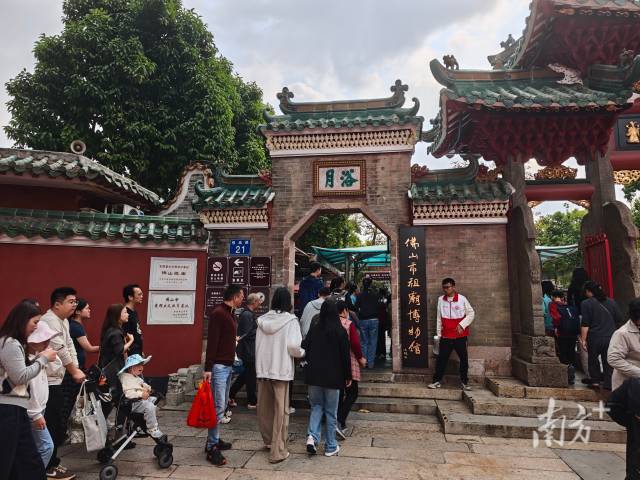 市民游客排队进入祖庙。南方+ 陆瑶 拍摄