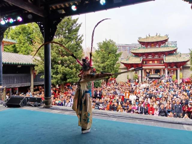 万福台上,粤剧经典唱段婉转悠扬,重现诗词里“万人围住看琼花”的盛况。祖庙万福台每天上演两场粤剧,用最地道的岭南腔调,唱响“马到功成、龙马精神”的新春篇章。