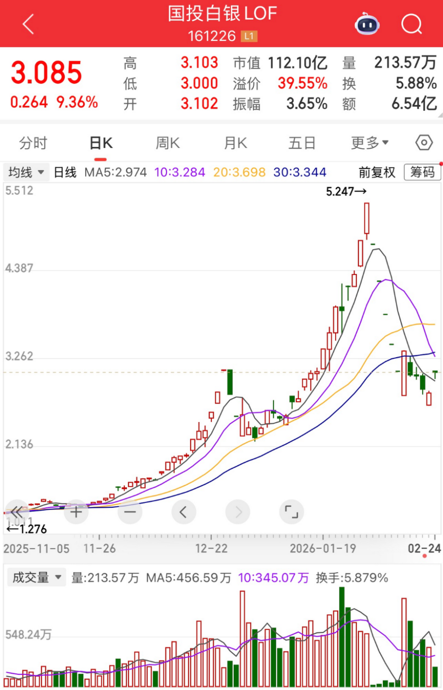 国投白银LOF复牌高开,盘中一度触及涨停,现涨超9%。国投瑞银基金管理公司2月15日发布国投白银LOF相关补偿方案。根据方案,以2026年2月2日净值确认赎回的自然人投资者,1000元以下损失全额补偿。