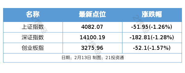 节前一周(2月9日—2月13日),三大股指集体上涨。截至2月13日收盘,上证指数周涨幅0.41%,报4082.07点;深证成指周涨幅1.39%,报14100.19点;创业板指周涨幅1.22%,报3275.96点。