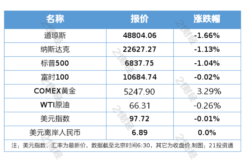 纽约股市三大股指2月23日下跌。截至2月23日收盘,道琼斯工业平均指数比前一交易日下跌821.91点,收于48804.06点,跌幅为1.66%;标准普尔500种股票指数下跌71.76点,收于6837.75点,跌幅为1.04%;纳斯达克综合指数下跌258.79点,收于22627.27点,跌幅为1.13%。