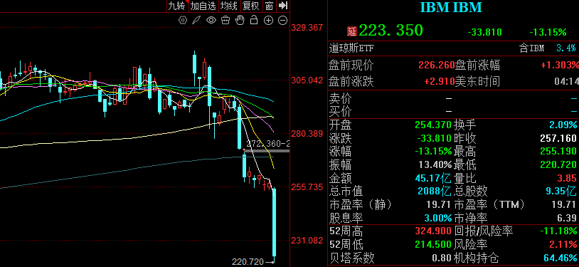纳斯达克周一大跌,资本对AI颠覆性力量的担忧日益加剧,拖累了快递、支付和软件公司的股价,并导致IBM创下25年来最大单日跌幅。