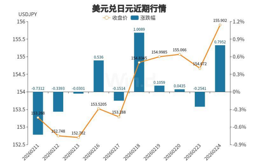 当地时间2月24日,日元汇率突然大幅跳水,日元兑美元汇率一度跌超1%。截至当日收盘,日元兑主要货币普遍走低,日元汇率贬值压力显著上升。