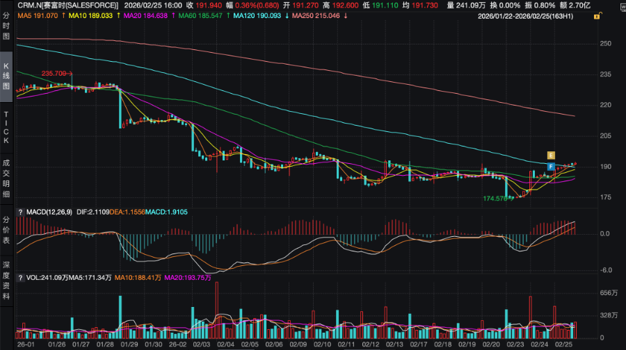 这率先体现在二级市场层面。根据Wind统计,今年以来至2月25日收盘,以Salesforce、Adobe为代表的美股软件巨头就遭遇了超25%的跌幅,2025年以来两家公司整体跌幅约为42%。