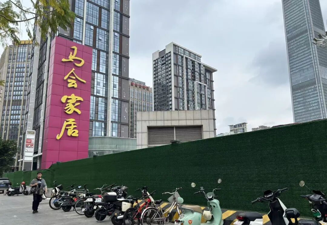 其中,地块东南和北面拆除较多,地面堆起大量建筑废料,一台挖掘机正在作业中。里面的马会家居卖场、商铺已清空,部分建筑被拆除。
