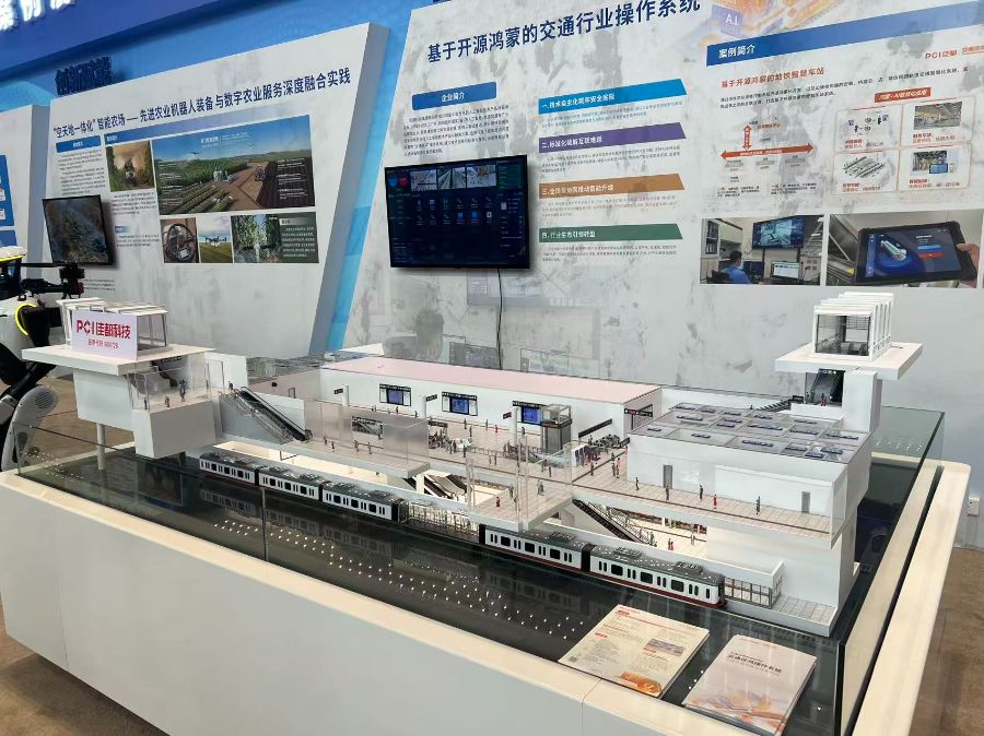 在大会的另一展区,佳都科技则将深圳红岭南站等比缩小放进展厅,这是佳都科技基于开源鸿蒙打造的“交通鸿蒙”系统在地铁车站的创新应用。