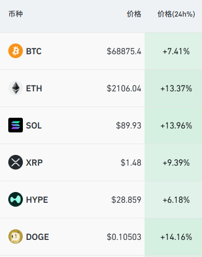 加密货币市场全线暴涨,截至北京时间6:22,比特币涨7.4%,以太坊、SOL、狗狗币大涨超13%,XRP涨超9%。近25小时内全球超13万人被爆仓,爆仓总金额6.5亿美元,其中90%为空单爆仓。
