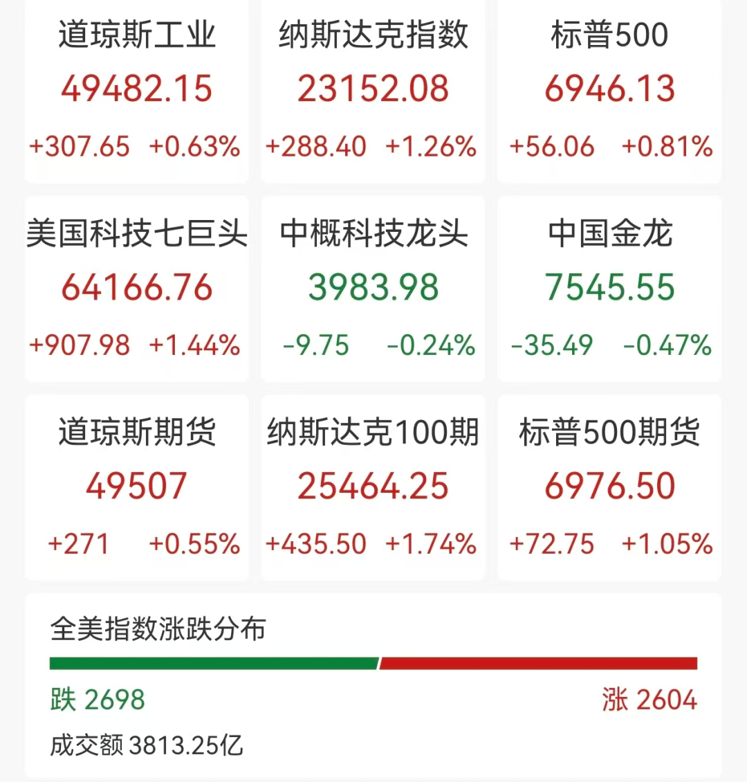 周三(2月25日),美国三大股指全线收涨,纳指涨超1%。