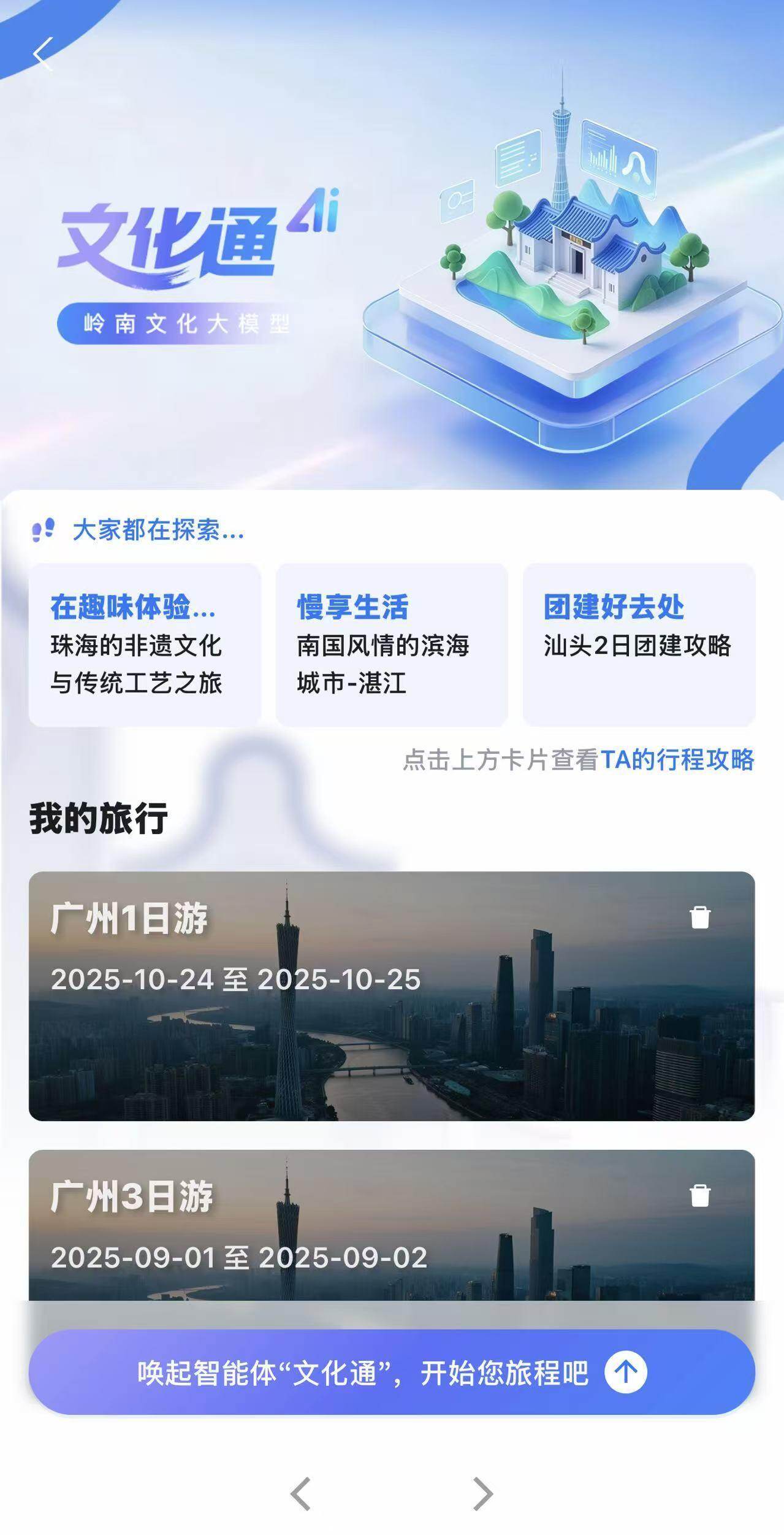 在广东,这种“科技+文化”的融合探索走得更深。由羊城晚报羊城派客户端推出的“文化通”智能体作为国内首个文化垂直类多模态推理大模型的应用实践,入选2025年广东“AI+文旅”15个典型案例。游客只需在羊城派首页点击图标,30秒内就能生成古村落探访、非遗体验等个性化行程单。不少游客用过后惊呼,连“老广才知道”的早茶店和骑楼打卡点也能精准推荐。