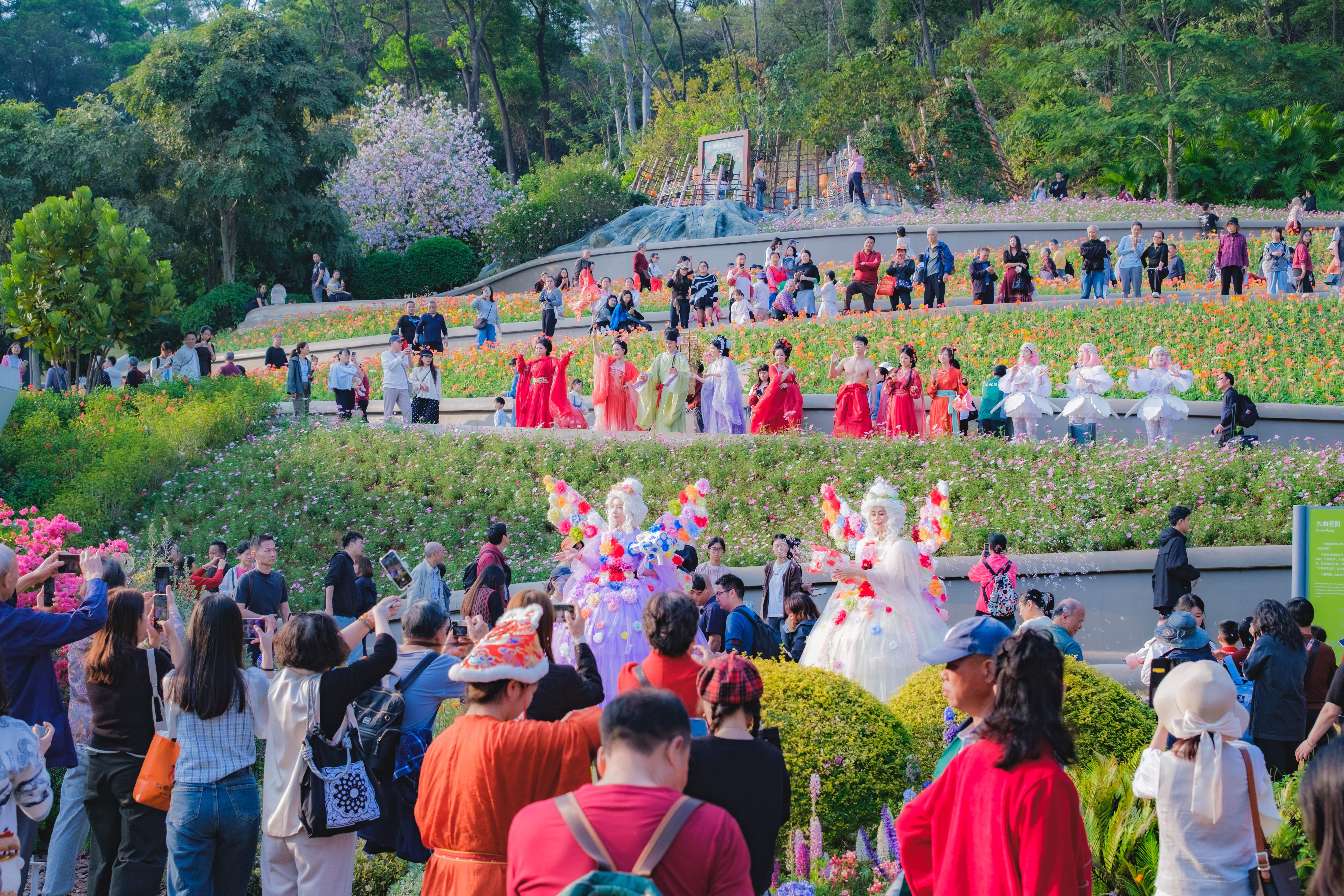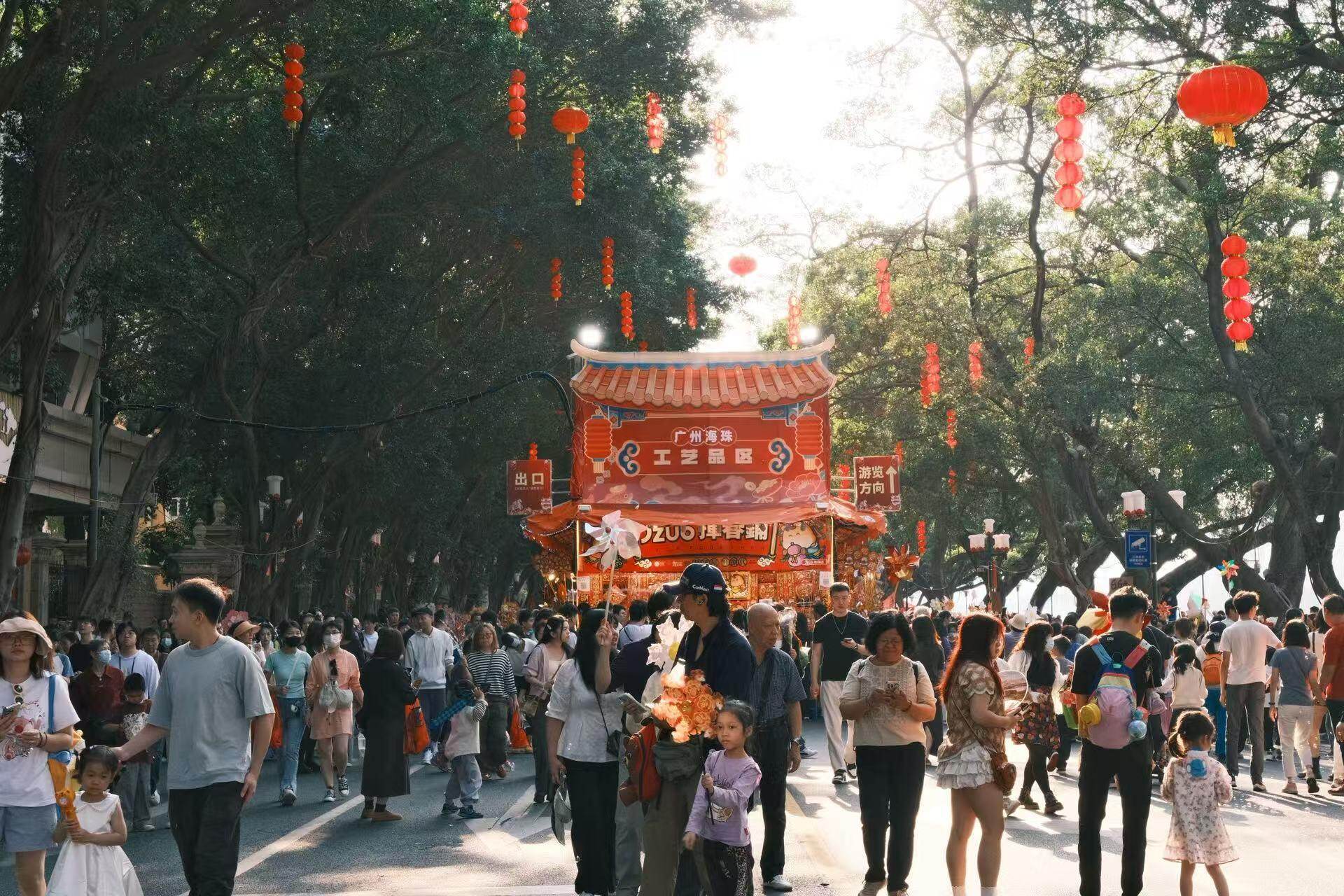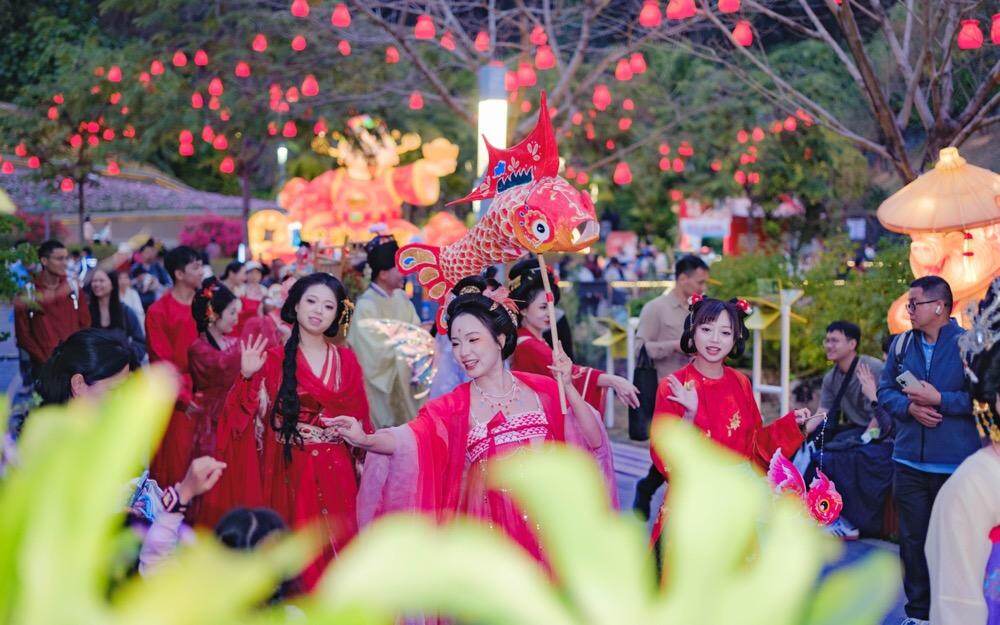 他们当中,有追着英歌队伍跑了三条街的陕西游客,有被女儿接到广州避寒过年的东北老人,有靠AI规划返乡聚会的00后,有在云萝植物园“灯影花境”里流连的一家老小,也有第一次在花市按下快门的外国友人。