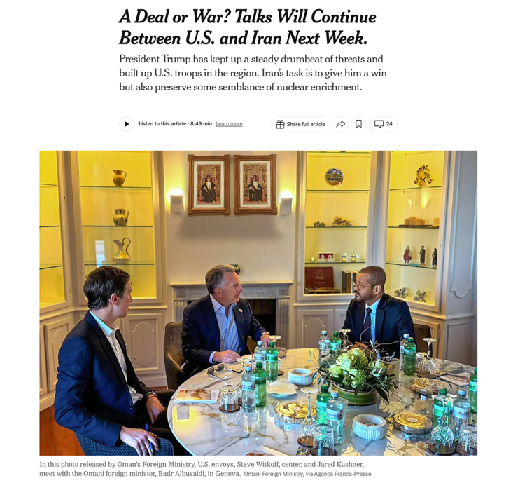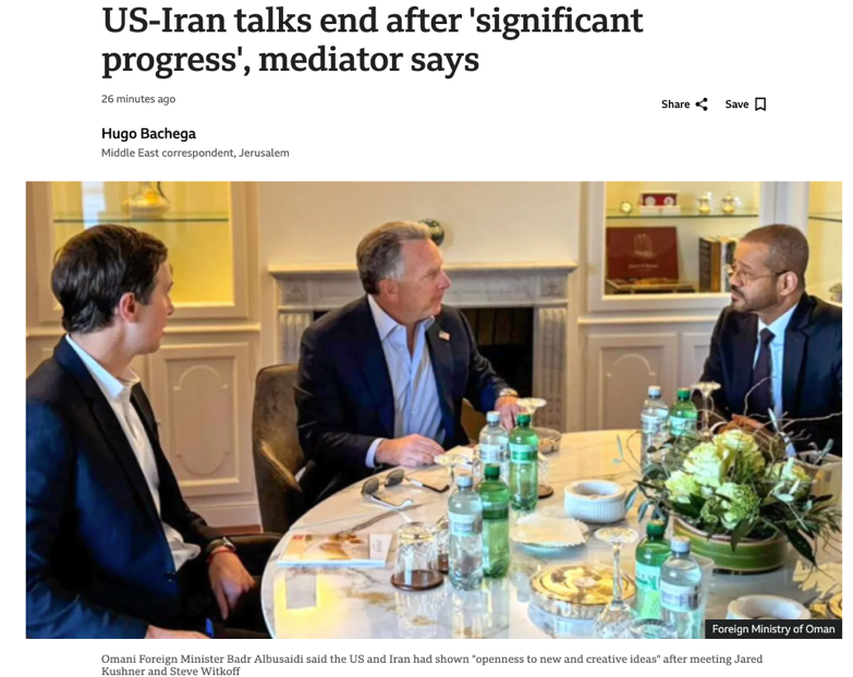 △BBC报道,虽然阿曼外交大臣表示美伊第三轮会谈取得重大进展,但是否能达成避免战争协议仍不明朗