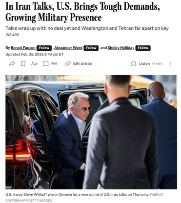 △《华尔街日报》报道,新一轮美伊谈判中,双方在关键问题上仍存在巨大分歧,同时美国也在加大施压力度