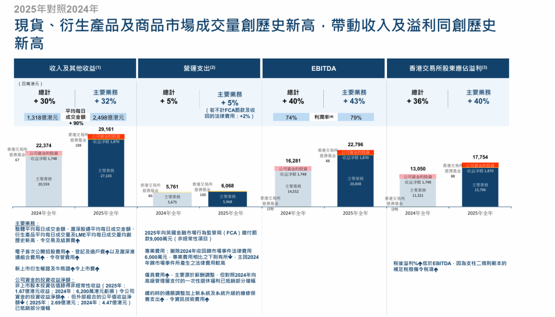 2月26日,香港交易所(00388.HK,简称:港交所)公布2025年全年业绩:港交所2025年收入及其他收益291.61亿港元,较2024年上升30%;股东应占溢利为177.54亿港元,同比上升36%。