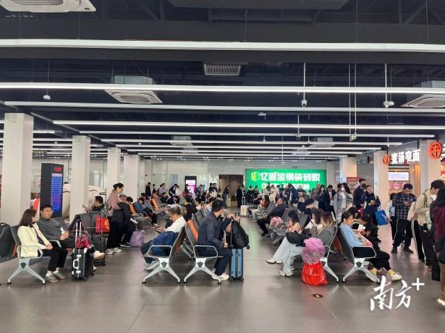春节期间客流增加,佛山机场加开值机柜台和安检通道提高旅客通行效率,在航站楼各区域安排志愿者为旅客提供咨询和引导服务。
