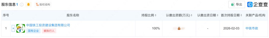 这家新企业,看似平平无奇,股权穿透后却露出了“硬核背景”——它是全球基建巨头中国中铁股份有限公司通过间接路径全资控股的子公司。