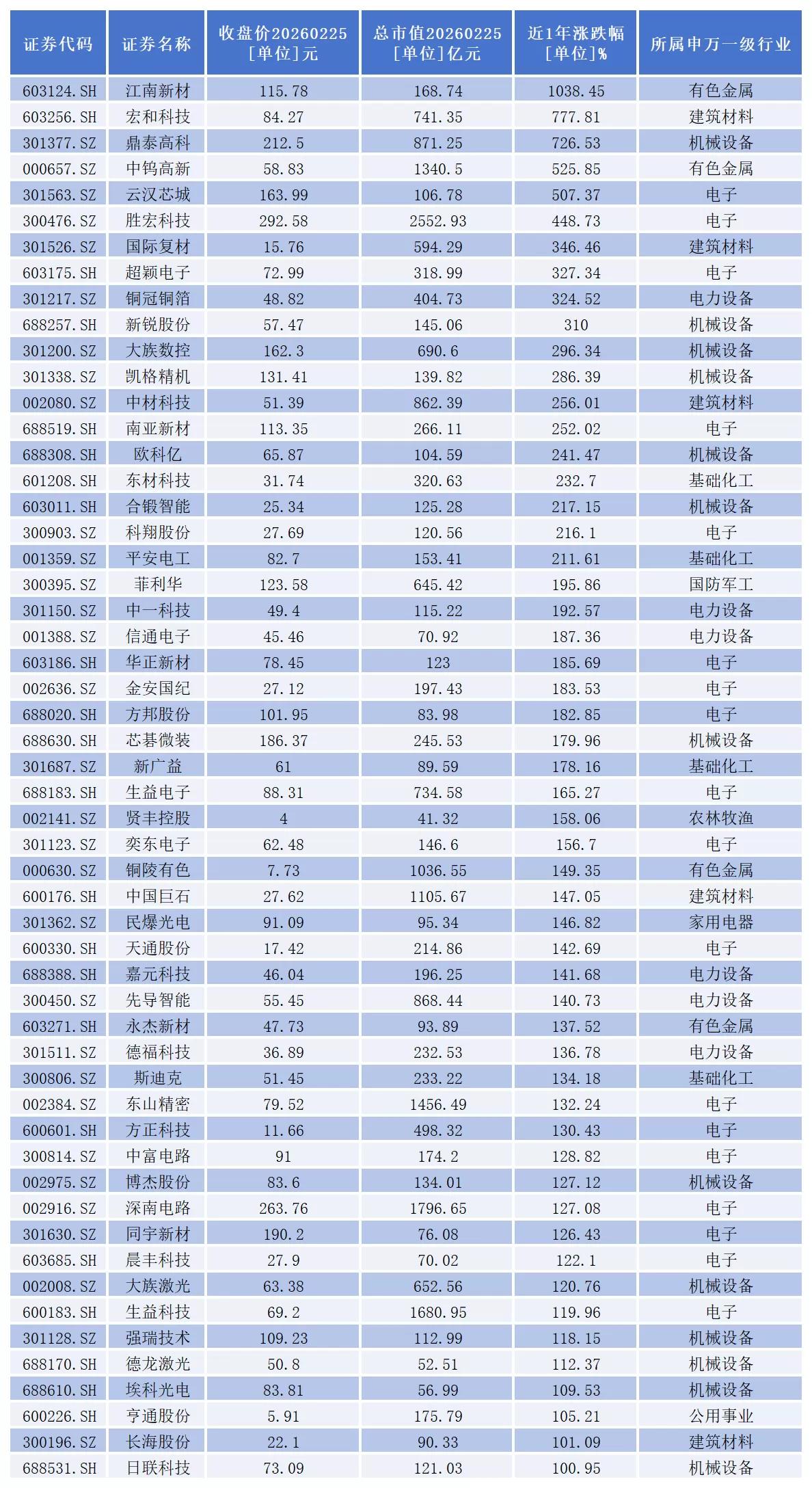 截至2月25日收盘,江南新材近一年股价累计涨幅高达1038.45%。