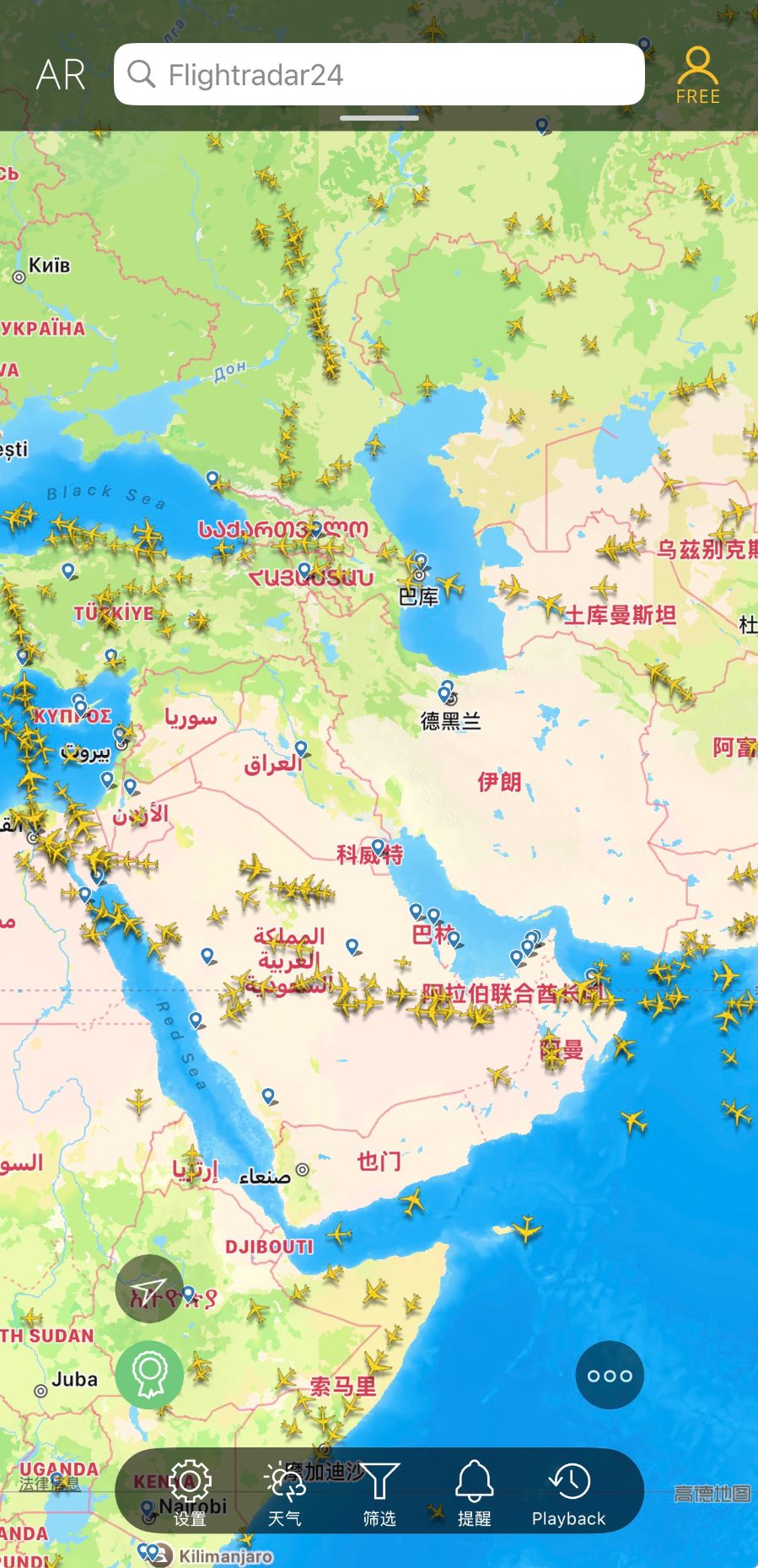 记者从flight radar24网站上看到,目前伊朗空域干干净净,几乎所有的民航客机均已避让该领空.伊拉克和叙利亚上空也基本没有民航飞机。