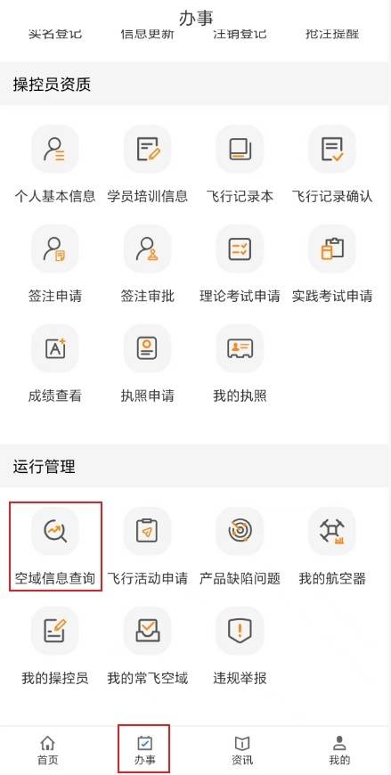 ✦ 手机端APP:办事--空域信息查询