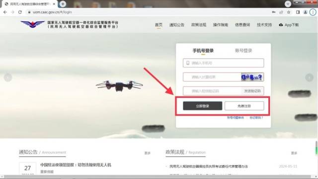 无人机持有者应同时按照中国民用航空局规定,进入民航官方平台(手机端下载“UOM”APP)或PC端登录(https://uom.caac.gov.cn/#/login)按流程实名登记。