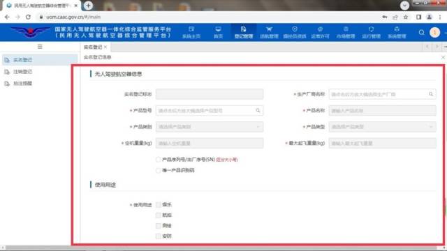 ✦ PC网页端:登记管理--实名登记--注册品牌无人机/注册自制无人机