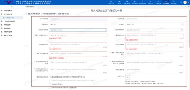 进入信息填写界面,根据实际情况填写相关信息后,点击“完成申请”,等待审批。审批通过后,起飞1小时前向飞行管制室提出申请,经同意后方可起飞。