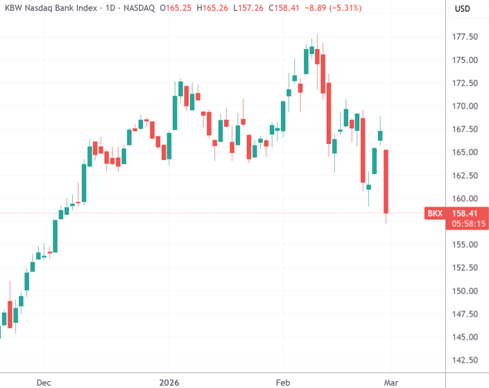 美股市场周五开盘后,美国银行、资管和金融服务板块再度遭遇沉重抛售。除了人工智能引发金融系统风险的忧虑外,背靠华尔街支持的英国抵押贷款公司MFS轰然倒闭也引发私募信贷行业的信心动摇。