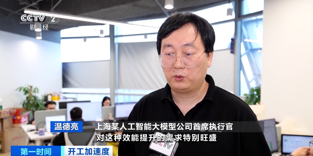 上海某人工智能大模型公司首席执行官 温德亮:在AI领域上的投入,特别是企业,对这种效能提升的需求特别旺盛,今年市场需求应该是在10倍以上。