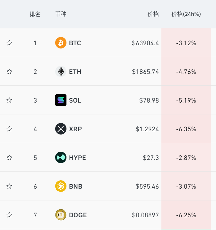 以太坊同样未能幸免,24小时内最低跌至1842美元,至28日20时30分跌幅超4.6%。整个加密货币市场哀鸿遍野。Solana、Dogecoin跌幅超5%,BNB、XRP、Bitcoin Cash等主流币种全线重挫。