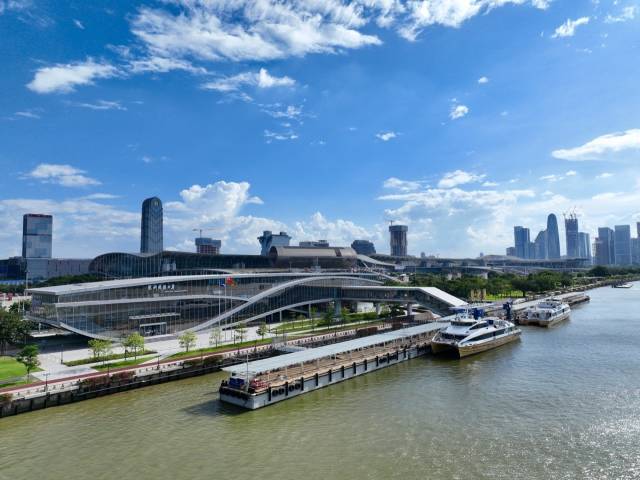 琶洲港澳客运口岸是广州市区内唯一的水上跨境客运口岸,位于海珠区阅江中路,紧邻广交会展馆,地理位置优越、交通便捷。自2023年通航运营以来,该口岸已累计服务包括6届广交会客商在内的大批跨境旅客,累计运载旅客超36万人次。目前,口岸已开通香港国际机场往返航线,创新推出“海天联运”服务模式,实现“广州检票、香港登机”一站式出行。