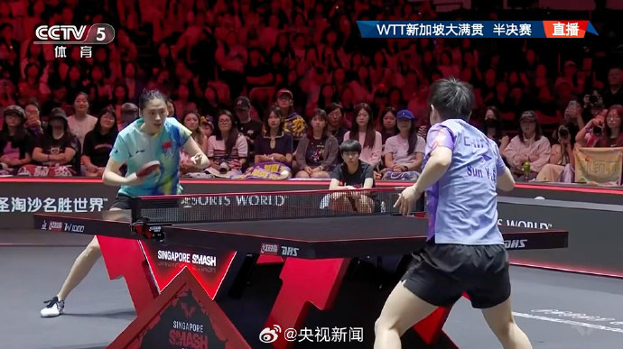 WTT新加坡大满贯女单半决赛,孙颖莎4-1战胜陈熠,晋级女单决赛,具体比分为11-2、14-12、11-7、5-11、12-10。今晚19时,孙颖莎与王曼昱的对决将打响,国乒也包揽了女单冠亚军。