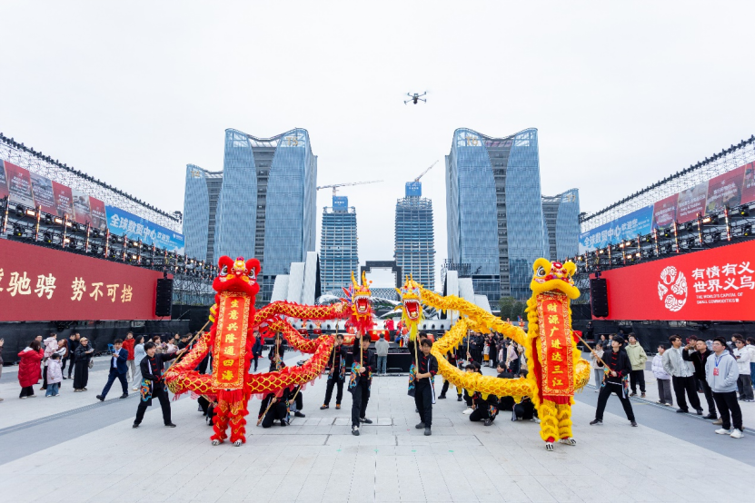 义乌市场的新春开市典礼,以往一直在国际商贸城一区举办,而在2026年,移至义乌新地标——义乌全球数贸中心。