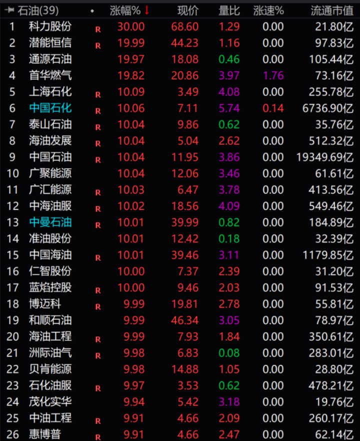 中石油中石化罕见涨停