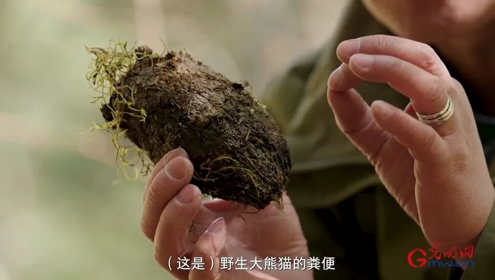 大熊猫国家公园王朗片区巡护员 梁春平:这就是野生大熊猫的粪便。这个地方有竹子,旁边就是一条兽径,应该是从这里路过的。