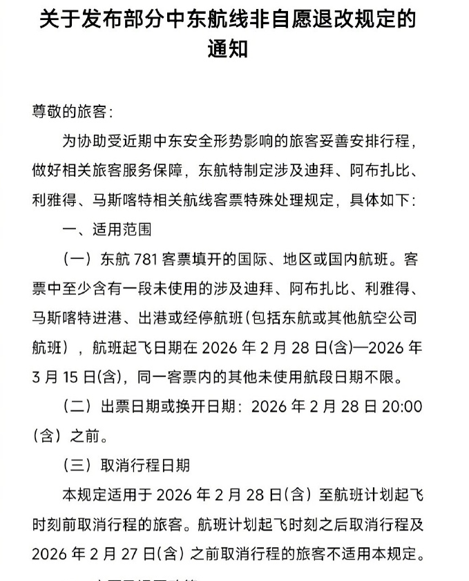截至目前,东方航空、中国国航、南方航空、海南航空、深圳航空、四川航空、厦门航空等航司,已先后发布中东航线航班机票的特殊处理方案。