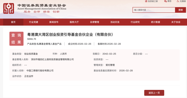 记者3月3日从公开渠道查阅获悉,粤港澳大湾区创业投资引导基金合伙企业(有限合伙)(简称“粤港澳基金”)已完成工商变更登记及私募投资基金备案登记,正式进入合规运作阶段。