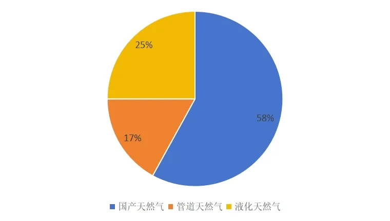 中国天然气供给已形成以国产气为主、进口LNG和管道气为补充的多元化格局,当前国产气、进口LNG和进口管道气在供给结构中的占比分别约为58%、25%和17%。2025年,中国国产气量达2619亿立方米,LNG进口量为6843万吨,全国天然气表观消费量4265.5亿立方米。