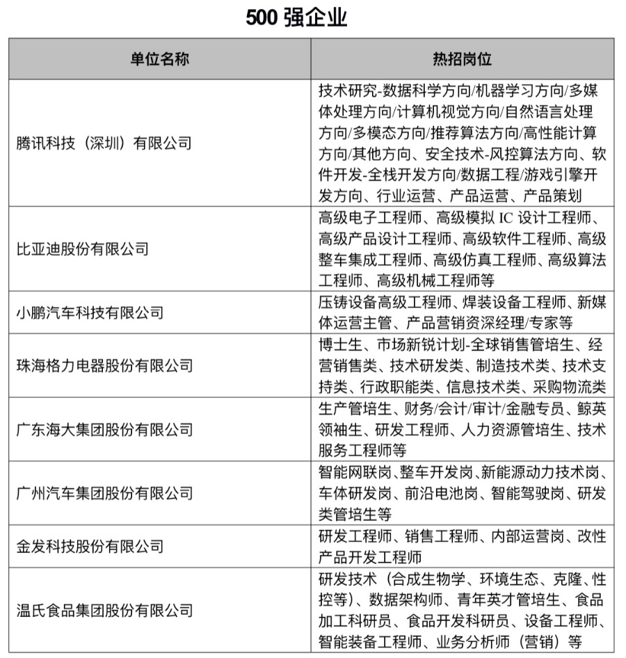 记者了解到,企业方面,此次招聘会将汇聚比亚迪、小鹏、广汽、腾讯、格力等500强企业及其子公司超150家,南方电网、华润集团、招商集团、广晟控股、广新控股、广州数科、越秀集团等央国企超170家,同时还有优必选、唯品会、海格通信、胜宏科技、大族激光等上市公司超170家。