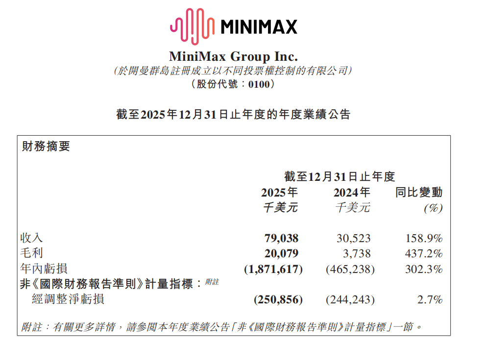 3月2日,MiniMax(0100.HK)发布了截至2025年12月31日的年度业绩公告,这也是公司自2026年1月上市以来的首份年报。