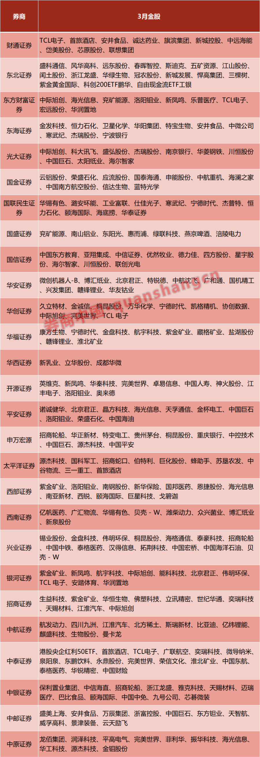 进入3月,券商新一期金股名单渐次出炉。
