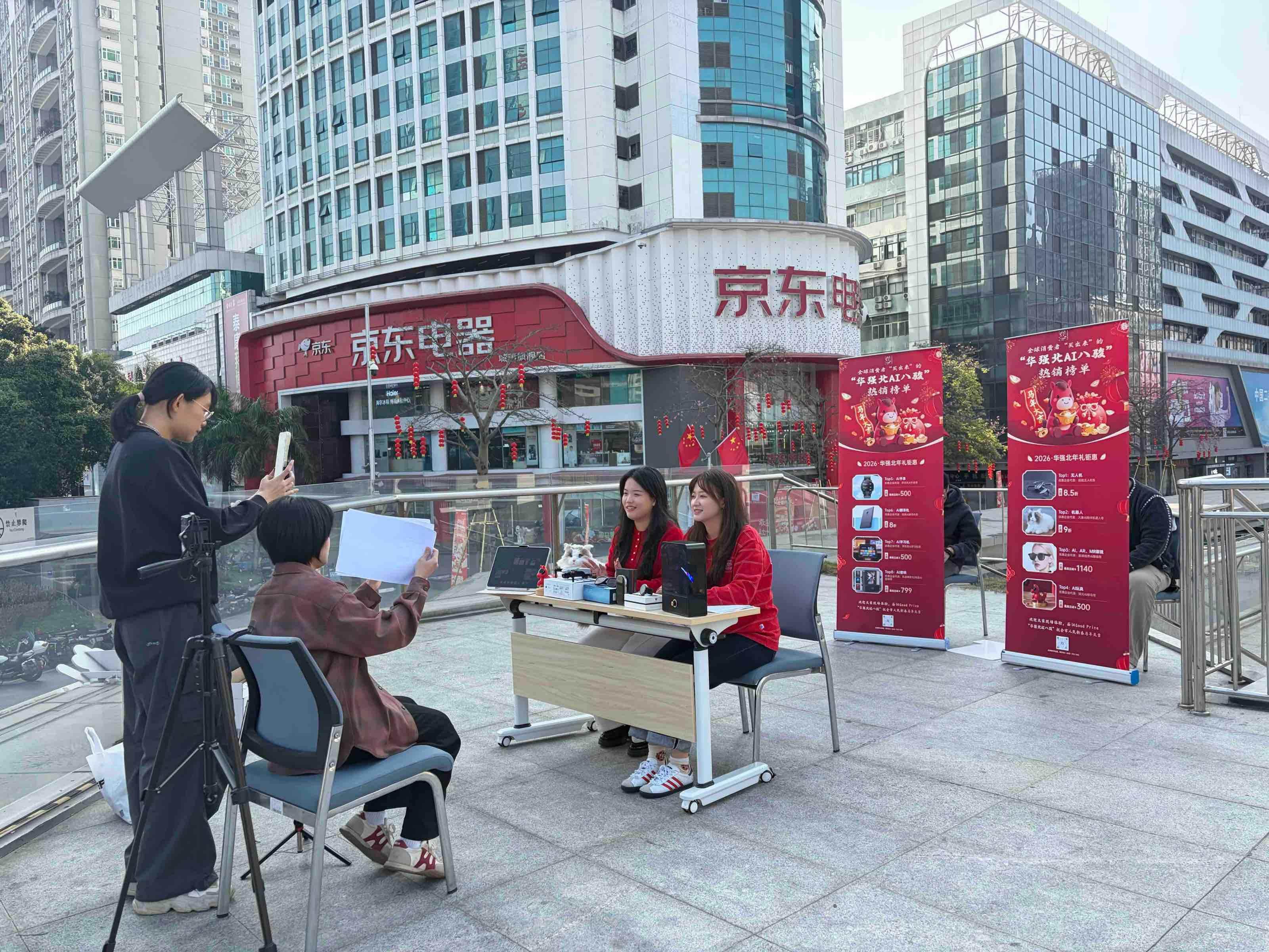 这是华强北继上月Z世代公务员街头直播推介“AI八骏”后,第二次启用直播这种高互动性的发布形式。