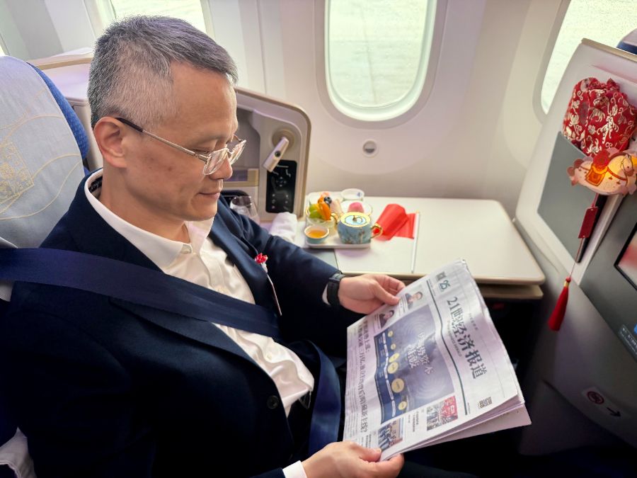 图为全国政协委员许可慰阅读《21世纪经济报道》。张雅婷摄