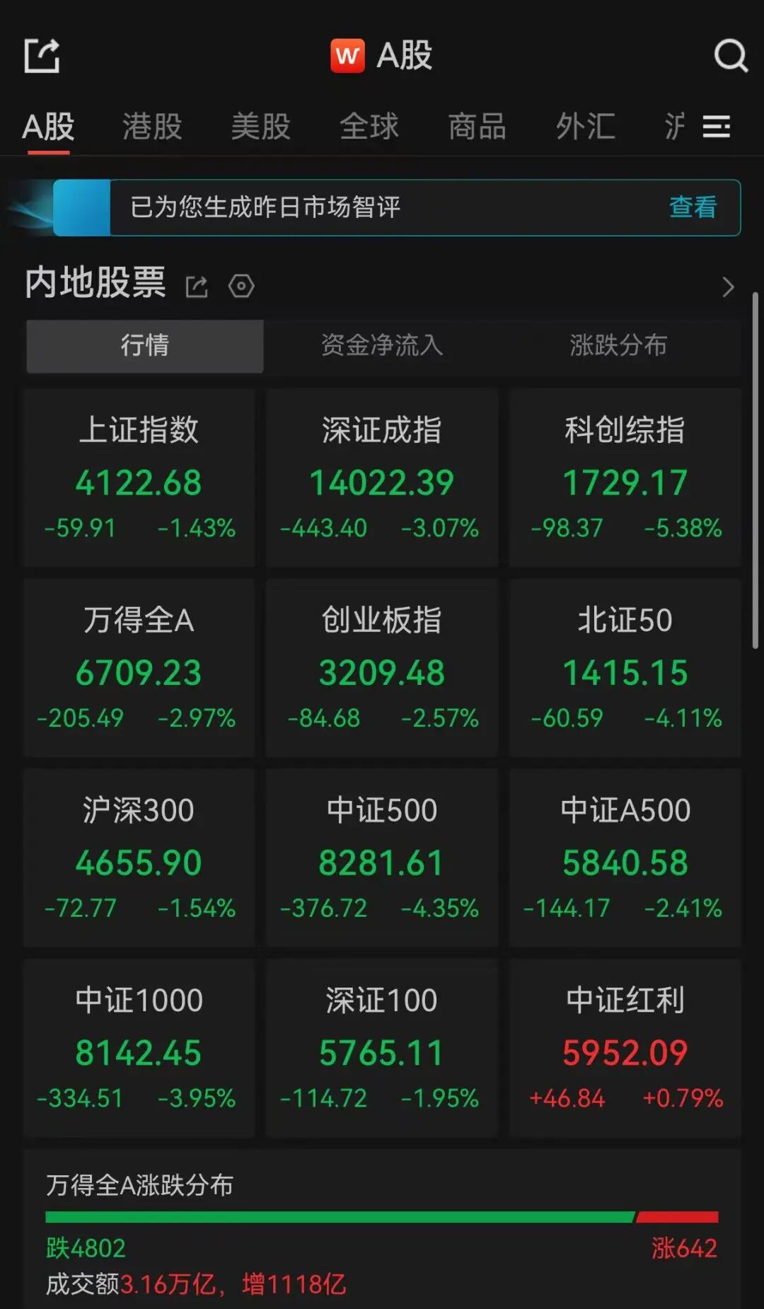 3日,A股三大指数高开,随后均震荡下行收跌。截至收盘,沪指跌1.43%,深证成指跌3.07%,创业板指跌2.57%。全市成交额3.16万亿,连续两日突破3万亿元,超4800只个股下跌。