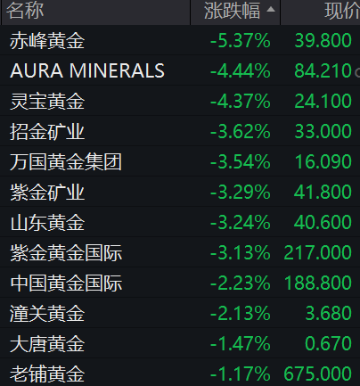 贵金属板块大跌,赤峰黄金跌超5%,灵宝黄金跌超4%,紫金矿业、山东黄金跌逾3%。