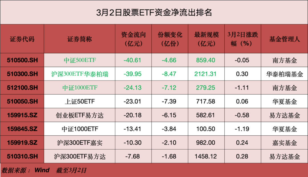 今年2月股票ETF市场资金合计净流出近430亿元,前两个月,全市场股票ETF资金净流出高达8072.98亿元。
